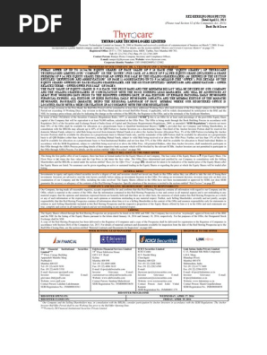 Thyrocare Ipo Allotment : 10 each (the equity shares) of thyrocare technologies ltd (the company or the issuer) for cash, at a price of rs.